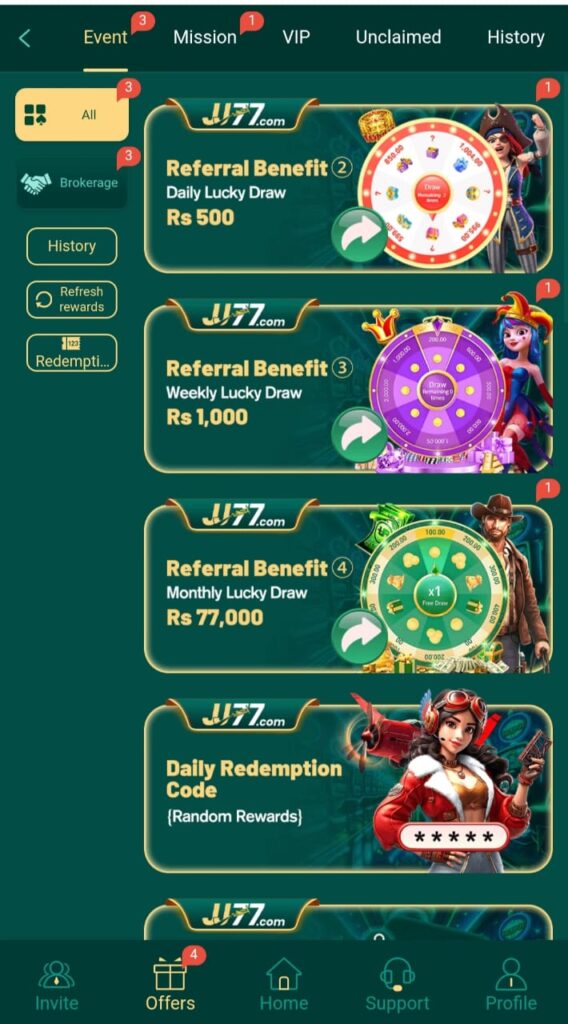 Other Bonuses Available in JJ77 Game