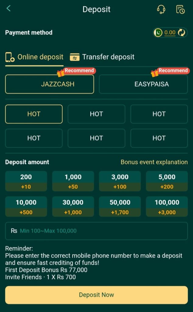 Depositing money in Game is very easy and safe. The process is designed for Pakistani users.