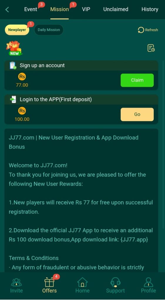 JJ77 Game Registration Bonus